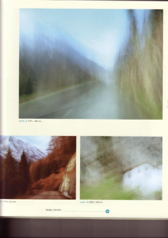 Der Blick wird müder. Die Monotonie des Fahrens oder besser: des Gefahrenwerdens verlagert die Tiefenschärfe, manchmal auch auf die Windschutzscheibe mit ihren Schlieren, Wischerspuren, Waschwachsresten und Insektenkadavern. Der Asphalt zieht sich hin, die Rücklichter und Landschaftsfragmente, die Verkehrsschilder und die Leitstreifen strukturieren das ästhetische Empfinden und lassen den Fotoapparat in Aktion.